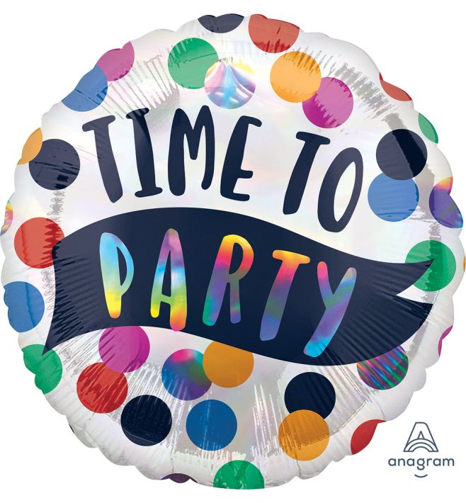 TBC 17" Anagram Time to Party Holographic Iridescent Foil Balloon