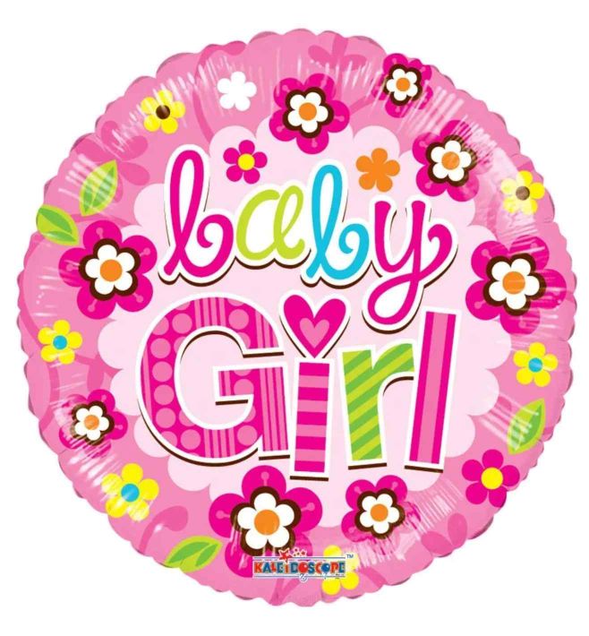 18 inch Baby Girl Flowers Foil Balloon by Kaleidoscope, they are great for baby showers. They are supplied uninflated.