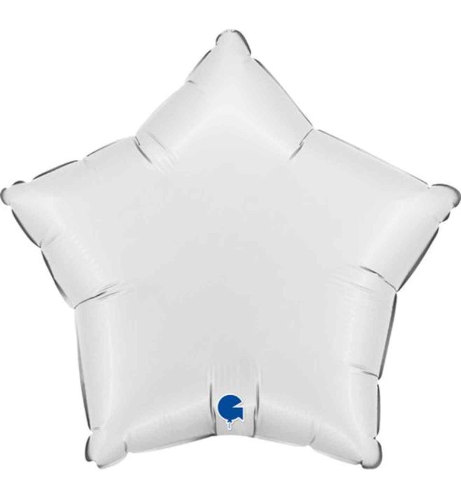 These satin white star shaped foil balloons from Grabo are supplied loose (not in retail packaging) and uninflated.