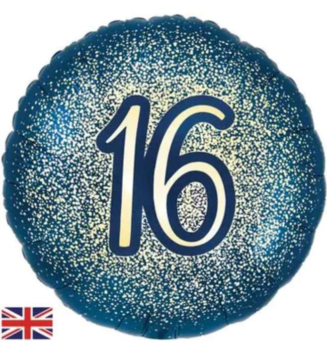 18" Oaktree Navy Gold Metallic Glitter 16th Birthday