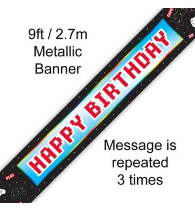 A go to decoration for your birthday celebration. Each banner measures 9ft/2.7m with the message repeating 3 times per banner.
