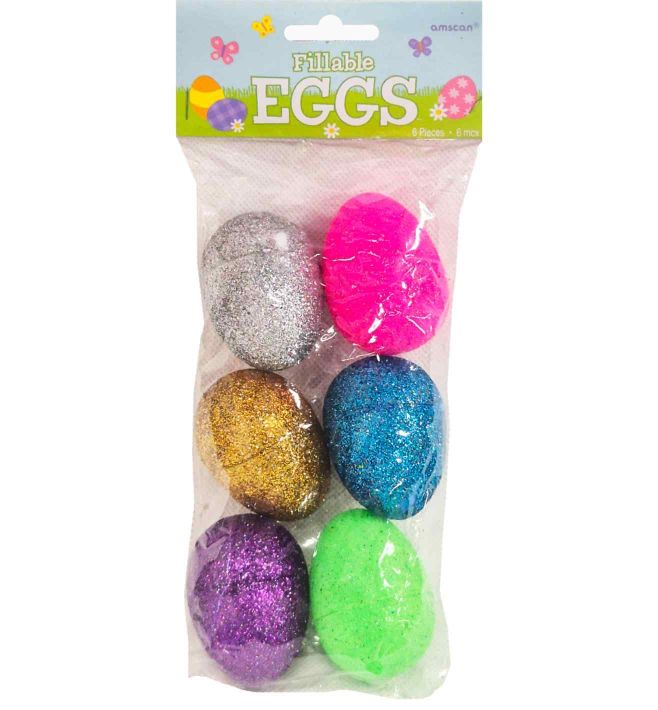 Glitter Fillable Easter Eggs These glittery Easter eggs are a fun and festive addition to your holiday celebrations. With a pack of 6, you can fill them with treats, small toys, or even personalized messages for a unique Easter egg hunt experience. The eggs are fillable, allowing you to customize the contents and create a special surprise for each participant. Imagine the joy on their faces when they discover a glitter-filled egg with a special treat inside!